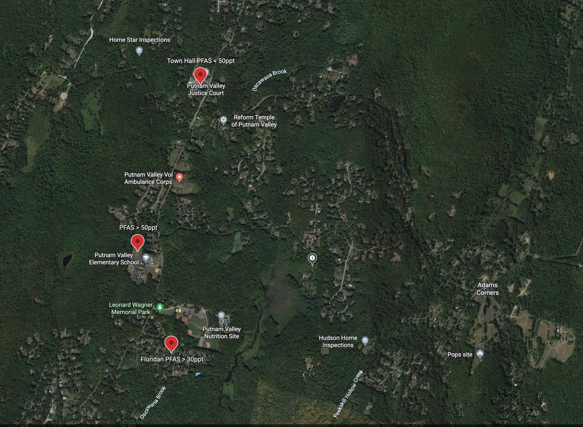 To date, water tests showing high PFAS levels have been found in a relatively small area of town, mostly along a section of Oscawana Lake Road.