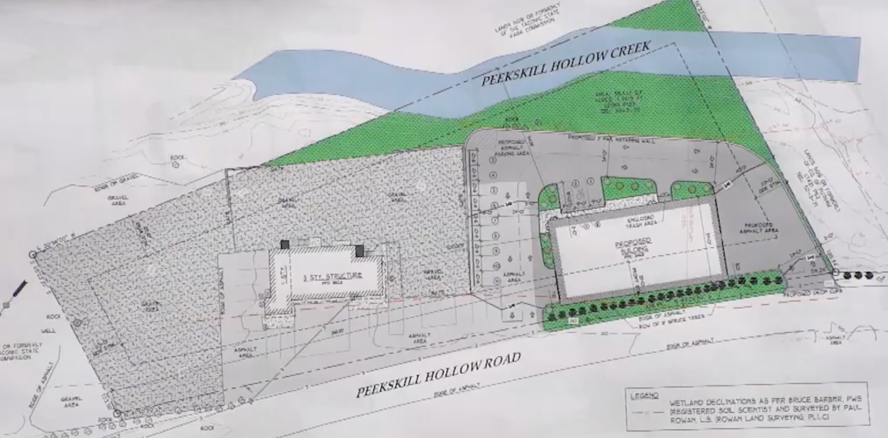 Last May, the owners of that well-regarded auto repair company submitted an application to the Planning Board for permission to construct a 100 ft. by 51 ft. two-story building so they could store damaged vehicles there. In an effort to keep the building and any leaking fluids from those damaged vehicles as far from the Peekskill Hollow Creek and the wetlands area on the property as possible, the Planning Board staff encouraged Citywide to move its proposed building right up against Peekskill Hollow Road.